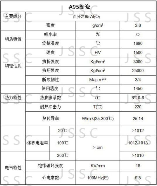 A95陶瓷性能參數(shù)
